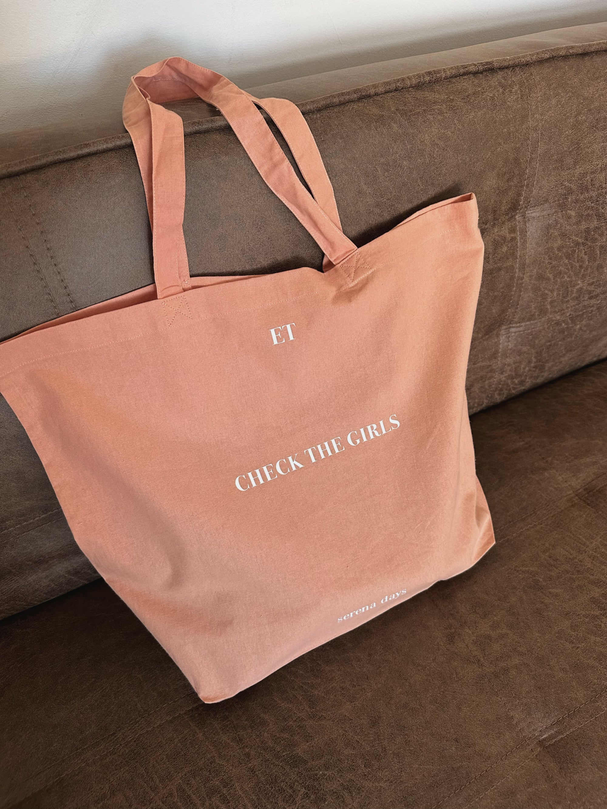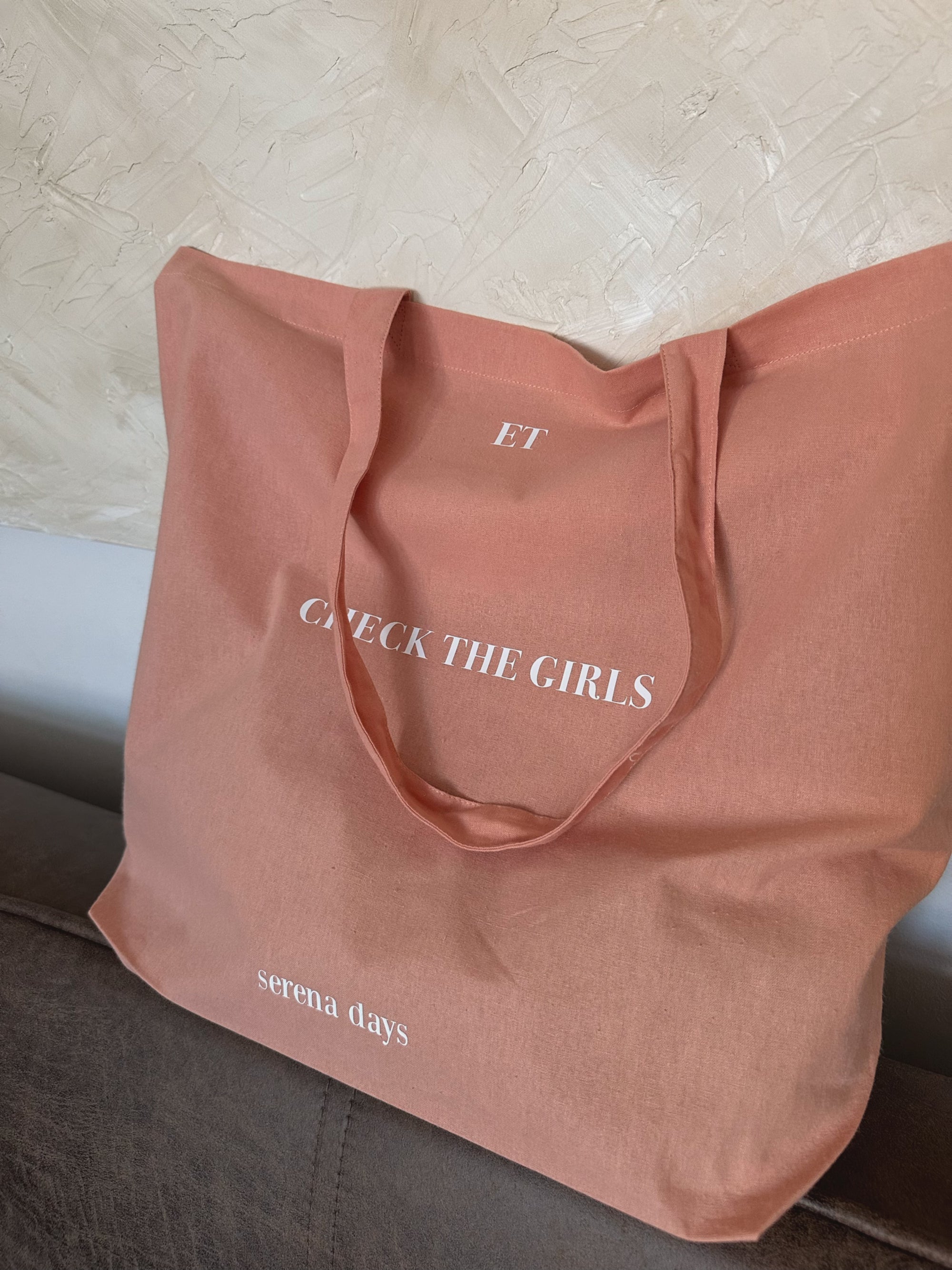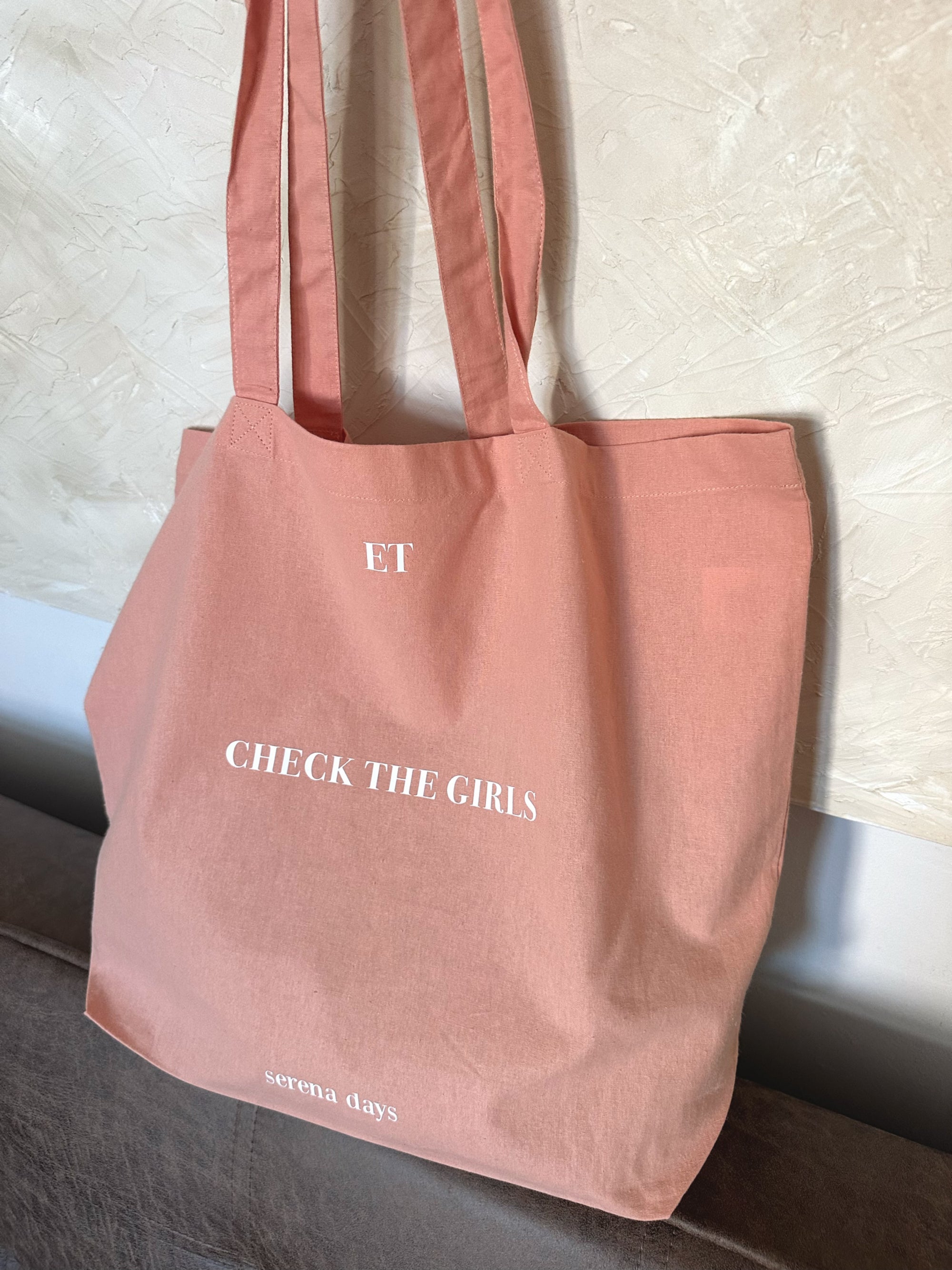 Serena Days monogram blushed rose cotton tote bag - Breast Cancer Awareness